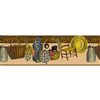 Dundee Deco Country Beige Brown Yellow Chairs Baskets Hats Peel and Stick Wallpaper Border