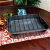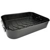 Gibson Home's Top Roast Non-Stick Roaster includes a 16-inch by 12-inch by 3-inch Roaster and a metal rack. Silver Handles provide an easy grip and roaster is presented in a handsome silver color. Carbon steel construction is strong and durable. Non-stick interior is perfect for low-fat cooking and is easy to clean. Hand wash is recommended. A great value for an appealing and convenient roasting pan.
