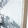 Wow all of your guests with this larger than life, hand painted abstract featuring textured layers of various shades of grey over soft blue tones perfectly accented with metallic silver leafing and silver floater frame. 55" x 2" x 75"