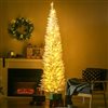 HOMCOM 7-ft H White Prelit Pencil Artificial Christmas Tree w/ 200 Warm White LED Lights - 499 Tips