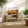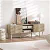 Tired of a cluttered living room that ruins your relaxation? The constant mess of remotes and devices can make it hard to unwind. This HOMCOM TV console transforms your space into a serene retreat. Its stylish fluted doors design conceals clutter in side cabinets, while open shelves keep essentials handy. Raised for easy cleaning and crafted for stability, this entertainment centre brings both elegance and peace of mind to your home.