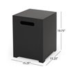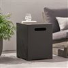 Enhance your outdoor space with the Homy Casa Square Metal Propane Tank Cover and Side Table by Real Flame. Constructed with a powder-coated iron frame, this piece is both durable and stylish, finished in a sleek brushed black colour. Featuring a built-in space for your propane tank, it eliminates the need for exposed hoses and keeps your area tidy. Easy to set up with no assembly required—just add lava rocks, plug in the tank, and enjoy the warmth and ambiance.