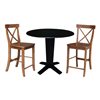 International Concepts 42-in Solid Wood Dual Drop Leaf Dining Table w/ 2 Counter Height Stools - Black/Distressed Oak