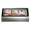 Whether you run a small butcher shop, grocery store, cafe, or specialty delicatessen you want people to walk in the door and immediately be drawn to the fresh foods you have behind your display. The Stainless Steel Refrigerated Deli Case that offers the right balance of food preservation and beautiful visual displays. Featuring an innovative hydrocarbon refrigeration system that helps maintain optimal food temperatures, an electronic control system that automatically monitors and adjusts the internal temperatures, and LED Lighting that helps show it all off with style. It's the perfect commercial deli case for businesses who value efficiency and quality. Features: Beautiful Curved Glass Display. Rust and corrosion resistant Stainless Steel. Smooth sliding doors. Multi-tiered shelving. LED lighting. High humidity environment that helps preserve meat and deli freshness.