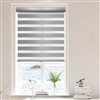 This Lumi Home Furnishings roller shade features a blackout, attractive double-layered sheer design. The elegant-looking fabric valance covers the top of the roller for a clean and distinguished decor expression. This attractive modern shade instantly blocks light and offers quick privacy to any needed window space areas. Simply adjust the bottom rail to align the material to control the amount of natural light allowed in. This sophisticated zebra shade is ideal for any room in your home including the kitchen, the living room or the dining room. It would also look great in an office.