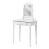 - Contemporary style vanity table with solid wood legs in a smooth white finish adds charm to a girl's bedroom