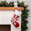 Capture the spirit of the season with this charming embroidered Christmas stocking set in festive red and white. Finished with a plush white faux fur cuff they bring warmth and elegance to your fireplace mantle or staircase. Create cherished memories and fill these stockings with gifts spreading joy and cheer throughout your home this holiday season. Product Features: Red and white Christmas stocking set. Showcases loop embroidered designs. Designs included a reindeer a snowflake and candy canes. It comes with a white faux fur cuff. Ready to hang with a fabric loop. Care instructions: spot clean only. For indoor use only. Dimensions : 20-in high x 9.5-in wide. Materials: polyester/faux fur