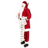 This classic Santa Claus is ready for his Christmas rounds. Wearing his red and white suit with faux fur trim, black boots and belt, he holds a green velvet gift bag filled with presents, pine and berries. In his other hand, he carries his naughty or nice list. Standing 72-in tall, this display figure is for indoor use only.