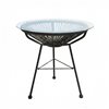 Constructed with a sturdy powder-coated steel frame, the table provides excellent stability and long-lasting outdoor durability. The decorative woven resin wicker cord base delivers a modern handcrafted appearance while offering weather-resistant performance. The round tempered glass tabletop creates a smooth, easy-to-clean surface that enhances both practicality and visual appeal.