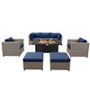 Think Patio Chambers Bay 8-Piece Metal Frame Patio Conversation Set with Navy Blue Cushions