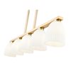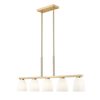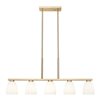 Dressed in a modern gold finish, this five-light linear chandelier stretches across the space with graceful balance and warmth. Ribbed matte opal glass shades diffuse the light into soft, ambient layers that feel calm and elevated. It’s a refined anchor for dining rooms, islands, or anywhere a little glow goes a long way.