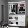 Versatile by Bestar 61-in 3 Drawer/Open Storage Classic Kit Durable 1.9 cm (0.75-in) shelves with a burn-, scratch- and stain-resistant finish melamine Finished with attractive molding Multiple configure options 25-in unit has 2 fixed and 4 adjustable shelves to maximize your space Wire grommet in back panel to allow for access to electrical outlets Drawers are mounted on ball-bearing slides for smooth and silent operation 36-in storage unit has 2 fixed and 3 adjustable shelves and 2 poles to hang clothes Easy to install Assembly required Includes: 36-in Open Shelves Storage Unit: 35.8-in Wide x 20-in Back To Front x 85-in High 25-in 3 Drawer/Open Shelves Storage Unit: 25-in Wide x 20-in Back To Front x 85-in High