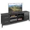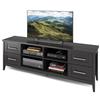 Admire the elegant and transitional design in this new TV stand from the Jackson Collection by CorLiving®. This timeless staple item comes in our black wood grain finish accented with imitation nickel handles and 4 cabinet drawers. Offering a variety of open and concealed storage options this timeless stand is perfect for all of your A/V components and accessories and can accommodate most TVs up to 80". Easy to assemble so you’ll be set up in no time.