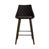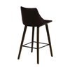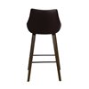 Clean lines and neutral colours make the chic Armen Living Dani bar stool a must-have in your kitchen or bar. The stools' round back features just the right amount of curve that plays against the elegant wood legs. The four lovely leg base is the perfect accompaniment to the soft upholstery of the seat. Placed at your kitchen counter, game table, or around a counter height table, these Armen Living Dani bar stools are a trendy style statement you will love having in your home. The Armen Living Dani bar stools are available in black faux leather upholstery with a walnut glazed wooden frame.