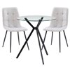 CorLiving Lennox Round Glass Table Top Dining Set with Grey Chairs - 3 Piece