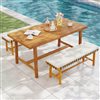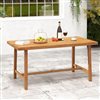 - The outdoor dining table is crafted of natural acacia wood, known for its durability, measuring 63" x 32" x 30",this rectangular table comfortably fits 6 chairs (not included)