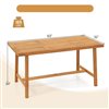 Our wooden rectangular dining table measures 63"x 32"x 30"and could comfortably accommodate 4-6 persons, ideal for savoring outdoor meals, hosting afternoon teas, or engaging in lively conversations with friends. The practical design includes a 1.97" umbrella hole with a cover, perfect for adding shade during sunny days. Crafted from premium acacia wood, the table exudes natural beauty and exceptional durability, and it is recommended to oil the surface periodically and cover it during rainy days to expand its lifespan and keep it looking great. Furthermore, there is a reinforced H-shape frame underneath the tabletop and sturdy screw connections, preventing deforming or cracking. The slatted wooden tabletop ensures proper ventilation, making cleaning and maintenance a breeze. Color: Natural