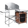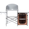 Experience all the comforts of home on your next outdoor adventure with this foldable camping grilling table. Equipped with a sturdy aluminum frame, heat-resistant aluminum and moisture-resistant MDF that will stand up to years of outdoor use.
