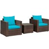Costway Rattan Patio Conversation Set with Turquoise Cushions and Coffee Table - 3-Piece