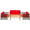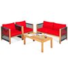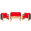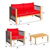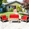 Costway Wood Frame Patio Conversation Set with Red Cushions Included - 4-Piece