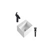 DROP Bath and Kitchen 13.4-in Rectangular Ceramic Wall Mount Vessel Sink Set in White w/ Black Drain and Faucet
