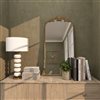 - A floor mirror that boasts a striking arched shape, beautifully complemented by an ornate pattern that dances across its surface, exuding an elegant charm that effortlessly elevates any space