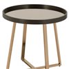 Distinctive in style the 23-in champagne walnut and mirrored metal round end table radiates a versatile charm. A champagne metal frame is finished off with a walnut and mirrored top that is the epitome of quality construction and design. Side tables are a great way to flank your sofa, use as an accent next to your favourite chair, or can even be used bedside. You can match it with other pieces to get the ideal look for your place.