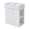 The Homy Casa 21.6-in wall-mount bathroom vanity is the perfect blend of modern design and functionality, ideal for compact spaces. Its sleek wave-patterned door and rose gold handle offer a contemporary touch to any bathroom. The high-quality ceramic basin ensures durability, while the pre-drilled single hole allows for easy faucet installation. The soft-close door provides a smooth and silent operation, while the side storage offers added convenience for bathroom essentials. With an overflow hole for safety and maximized space utilization, this vanity is perfect for transforming small bathrooms into stylish, organized spaces.