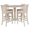 International Concepts 5-Pc 36-in Square Top Pedestal Unfinished Wood Table Set w/ 4 Bar Height Stools