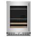 This 24-in undercounter beverage center with full-extension wood-front racks stores 14 wine bottles below with room for drinks and food on the full-width shelves above. Two temperature-controlled zones adjust for what you're storing, and a Temperature Monitoring System with sensor alert adds peace of mind. Fully Flush Installation with hidden hinges provides a built-in look within cabinetry.