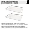 - This universal base can be installed in an alcove, in a left or right corner; add-on flanges are included, but not preinstalled for ultimate installation flexibility