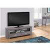 Bring a modern statement to your living room, family room, or den with this sleek, rectangular thick panelled TV stand in a smooth gray wood-look finish. The roomy top surface can easily accommodate any TV size with a centre stand, and a long open shelf space underneath to place audio/visual equipment and gaming accessories. The 2 large gliding storage drawers accented with sleek silver coloured handles are perfect to keep books, CD’s, DVD’s, or media components neatly in one place. Watch this contemporary TV console unit instantly upgrade your entertainment space! Full assembly instructions are included.