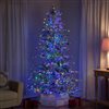 Enjoy nine feet of frosty beauty with this medium profile flocked Real Touch Elite Calgary Pine. This Real Touch Elite artificial Christmas tree is pre-lit with 1450 multi-function dual-colour LED lights. It features concave wide-angle LED bulbs and has 1960 branch tips. The tree includes a 65-in lead cord and is UL certified for indoor use only. If one bulb burns out, the rest will stay lit. It comes in 4 pieces including a stand for easy assembly, along with replacement bulbs, spare fuses, and a free black metal tree stand. Special memory wire allows for easy set-up, and a foot pedal offers 10 light functions. Input is 120 volts 60 hertz .50 amps; output is 30v/.40a. The tree measures 9-ft high with a 62-in base diameter. The tree stand is 7.5-in high by 24-in wide. Materials include PE, PVC, metal, plastic bulbs, and wire.