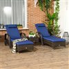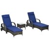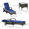 Outsunny 3-Piece Wheeled Patio Rattan Chaise Lounge Set - Dark Blue
