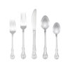 - Set includes: 8 dinner forks, 8 dinner spoons, 8 salad forks, 8 teaspoons, 8 dinner knives, 1 serving spoon, 1 slotted serving spoon, 1 gravy ladle, 1 serving fork, 1 butter knife, 1 sugar spoon
