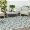 The Courtyard rugs bring a contemporary look to your busy living spaces both indoors and outdoors. This gray and blue rug measures 5,3 x 7,6 feet.