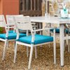 The Ravenna 7-piece dining set brings a unique and elegant style to your outdoor space. This set seats 6 people on comfortable, stackable chairs. The vibrant colour of the Sunbrella fabric cushions adds a modern touch to this set that is sure to please everyone. The pieces feature a thick and sturdy aluminum frame making this set easy to maintain and weather resistant. The pieces are covered with a brushed finish that recalls the rustic side of the design.