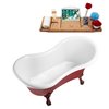 Streamline 31W x 62L Glossy Red Acrylic Clawfoot Bathtub with Matte Oil Rubbed Bronze Feet and Reversible Drain with Tray