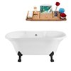 Streamline 32W x 60L Glossy White Acrylic Clawfoot Bathtub with Matte Black Feet and Center Drain with Tray