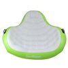 Soak up the sun and relax in style with this inflatable green and white lotus blossom float. The float is ultra comfortable with a headrest that supports you in a relaxed sitting position. You can choose to relax alone or have another person join you in relaxing or catching those rays of the sun! There are two black handles one on each side. Float can hold up to two people. Features a soothing rocking action while in the water. Recommended for ages 13 years and up. Dimensions: 12 inches long by 6.5 inches wide.