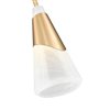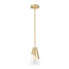 Infuse your space with a sense of sophisticated warmth with this modern one-light pendant design. A chic metal shroud takes centre stage, wrapping around a conical shade of icy swirled artisan glass. It showcases a rich, warm modern gold finish that lends vintage influence and supreme elegance.