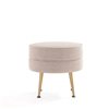 Manhattan Comfort Bailey Mid-Century Off-White Polyester Upholstered Ottoman w/ Gold Feet