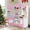 Costway Play Kitchen w/ Coffee Machine + Microwave Oven and Washing Machine - Pink