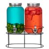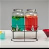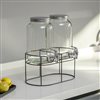Basicwise 2Pcs Versatile Glass Drink Dispenser Set with Metal Stand and Stainle