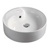 This round bathroom sink features a ceramic construction and is designed to be installed as an above counter vessel. This vessel comes with a White enamel glaze finish. This product is ideal for a wall mount faucet.