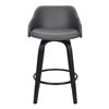 The Armen Living Alec contemporary swivel bar stool is a practical, yet stylish piece designed for both comfort and aesthetic pleasure. Alec, durable walnut wood finished exterior finds good company with the bar stool's sleek grey faux leather upholstered seat and back. Alec chrome footrest beautifully complements the elegant, straight leg design of this impressive stool. The 360° swivel action allows for maximum user mobility while seated. Featuring a foam padded, low back design, the Alec offers optimal lumbar support without compromising on the stool's contemporary appearance. The stylish Alec is available in grey faux leather and 30 inches bar height.