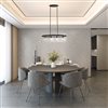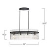 The Ava Collection oval chandelier enchants with its delicate arrangement of circular glass rods, elegantly suspended on a sleek black frame. Its versatile design harmonizes beautifully with both circular and rectangular tables, adding a touch of refined glamour to any room. This model is easily height adjustable to meet you preference.