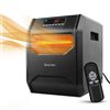 Take the chill out of the air in your home and lower heating bills in the process with this digital quartz infrared heater. This heater features 6 of our metal wrapped quartz infrared elements, has a washable air filter and uses up to 1500 watts. There are 3 heating settings including an Eco setting that will heat smaller areas to 68 °F. The lightweight heater design with integrated carry handle, which makes it easy to carry from room to room to enjoy the benefits of zone heating. This compact heater also includes a remote control providing more portability. Timer settings can be used to turn on or off the heater up to 12 hours ahead. If you consider buying a heater, you'll be definitely satisfied with it. Colour: Black Material: Plastic Case + Metal Voltage: AC 120 V/60 Hz Power Consumption: 1000 W/1500 W