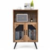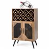 Costway Brown 2-Door Kitchen Storage Bar Cabinet Buffet Sideboard with Wine Rack and Glass Holder