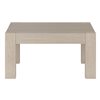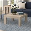 Simple yet eye-catching, this minimalist coffee table emphasizes clean lines and straightforward design. The posted-leg base anchors the piece and provides visual interest with the cross-grain finish details, while the natural wood-look finish adds texture and tonal variation to your space. With an assembly time under 10 minutes, this is the perfect piece to effortlessly update your living room, family room, or office.